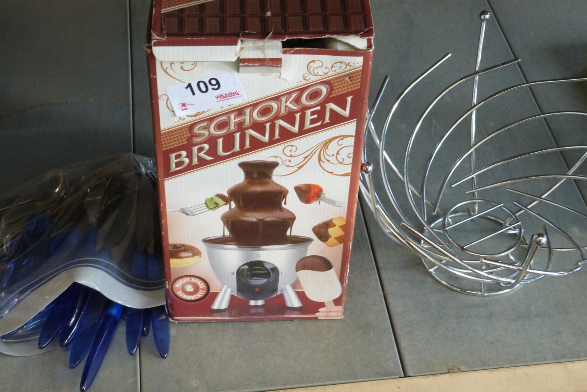 Schokobrunnen, Besteck, Obstkorb