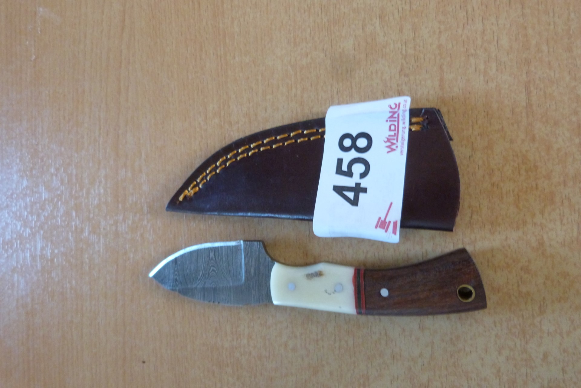 Jagdmesser mit Damastklinge und Lederscheide