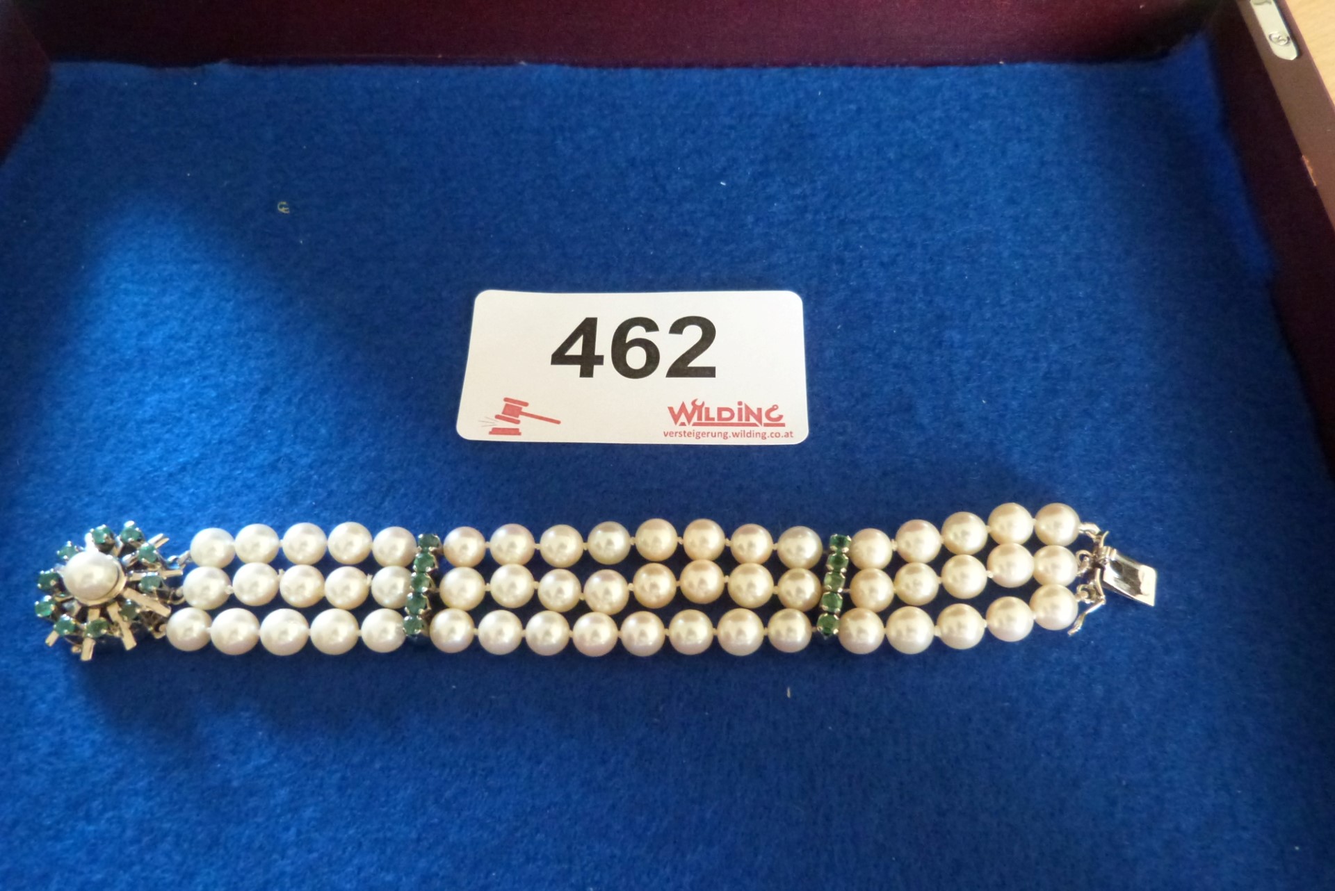 Perlenarmband, Goldverschluss und Smaragde, Meerwasserperlen