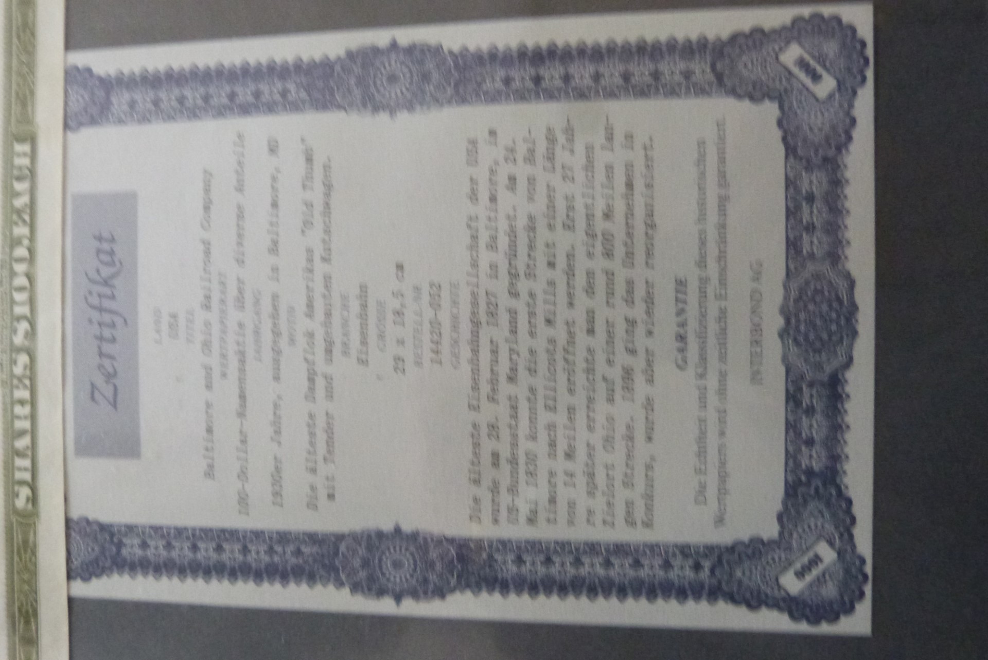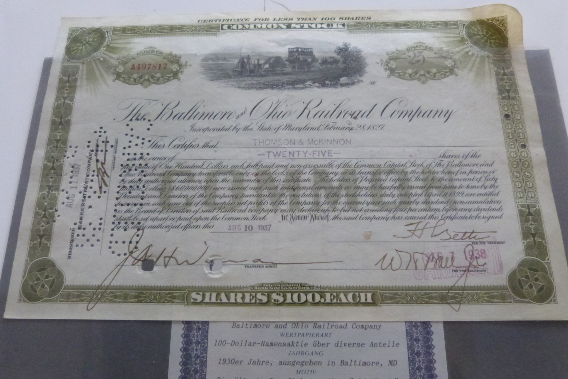 100 Dollar Namensaktie über die älteste Dampflok Amerikas